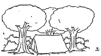 | Una idea original para la colocación de tiendas, cosa bastante monótona en los campamentos, consiste en colgarlas de los árboles, o sea, sobre unos palés colgados de una rama baja y gruesa. Si tenéis la suerte de hacer el campamento en una dehesa, esta solución puede ser la ideal. | ![]() |